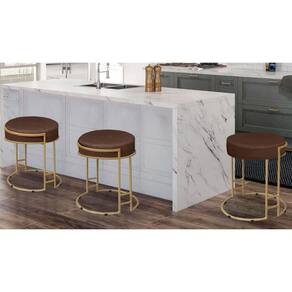 Puff Decorativo Sarah Sala E Recepção Metal Dourado Veludo