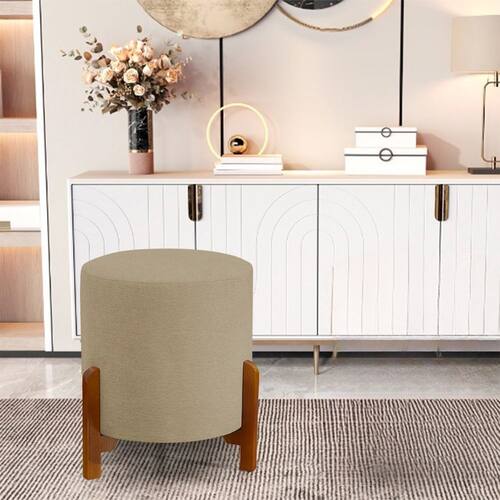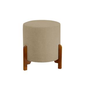 Puff Decorativo Thor 3 Pés Base em Madeira Maciça - Linho Bege