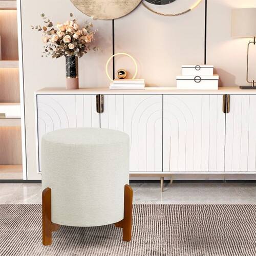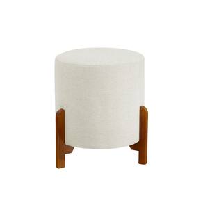 Puff Decorativo Thor 3 Pés Base em Madeira Maciça - Linho Cru - Branco