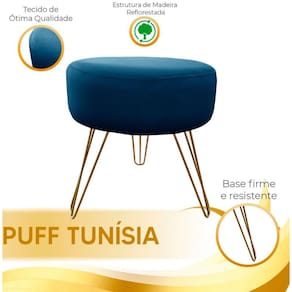 Puff Decorativos Sala Quarto Tunísia Veludo Azul Base Dourado - Star Confort Azul E Dourado O Puff Tunisia e um movel versatil e confortavel, fabricado na Tunisia. Possui design elegante, materiais duraveis e pode ser utilizado como assento adicional ou apoio para os pes. E leve, compacto e combina com diferentes estilos de decoracao. E uma opcao funcional e estilosa para adicionar conforto aos ambientes. A GARANTIA E DE FABRICA Comprando conosco, alem das vantagens em adquirir um produto de qualidade e sofisticacao, se eventualmente o mesmo apresentar algum problema, dentro do prazo de noventa dias, por sermos os fabricantes, te daremos total assistencia. Queremos lhe proporcionar uma experiencia agradavel com a compra e a certeza de estar negociando com uma empresa que preza acima de tudo, pela relacao de confianca com o cliente, nossa maior satisfacao.