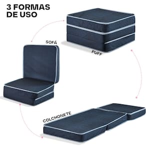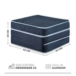 Medidas do Puff Aberto: 180 cm x 60 cm x 10 cm (Comprimento x Largura x Altura) Medidas do Puff Fechado: 60 cm x 60 cm x 30 cm (Profundidade x Largura x Altura) Material: Espuma de densidade 33 Tecido de revestimento: Jacquard Cor: Azul Marca: BF Colchões