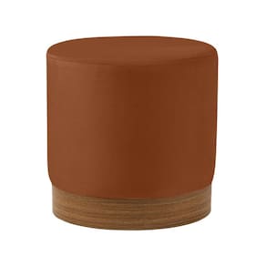 Puff em Madeira e PU Caramelo 40cm 18762 Mart