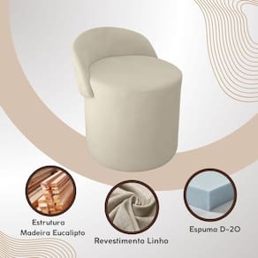 Puff Encosto Redondo Linho Escritório Sala Quarto Orgânico - Bege
