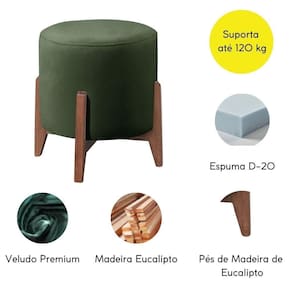 O Puff Redondo para sala de estar é revestido em tecido Veludo, base em madeira eucalipto deixando os pés aparentes trazendo um toque de modernidade, é o móvel perfeito para valorizar a sua decoração.