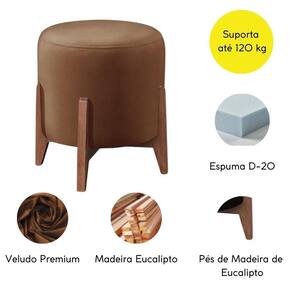 O Puff Redondo para sala de estar é revestido em tecido Veludo, base em madeira eucalipto deixando os pés aparentes trazendo um toque de modernidade, é o móvel perfeito para valorizar a sua decoração.