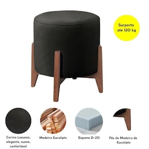 O Puff Redondo para sala de estar é revestido em tecido Corino, base em madeira eucalipto deixando os pés aparentes trazendo um toque de modernidade, é o móvel perfeito para valorizar a sua decoração.