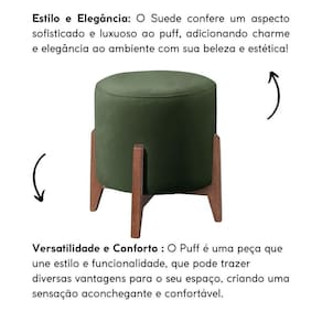 O Puff Redondo para sala de estar é revestido em tecido Suede, base em madeira eucalipto deixando os pés aparentes trazendo um toque de modernidade, é o móvel perfeito para valorizar a sua decoração.