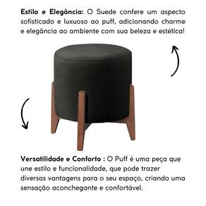 O Puff Redondo para sala de estar é revestido em tecido Suede, base em madeira eucalipto deixando os pés aparentes trazendo um toque de modernidade, é o móvel perfeito para valorizar a sua decoração.
