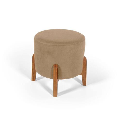 Puff Estofado Redondo em Madeira Maciça Berlim Straub Web