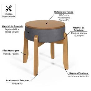 Puff Estofado Vira Mesa Redondo New Liz em Madeira