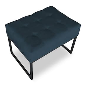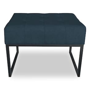 Puff Lisa Suede Azul Marinho Base Metálica Industrial Preto - Pallazio