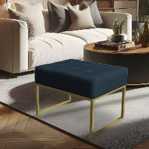 Puff Lisa Suede Base Metálica Industrial Dourado Azul Marinho