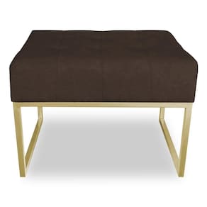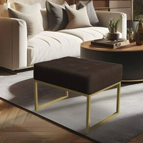 Puff Lisa Suede Base Metálica Industrial Dourado - Pallazio Cor Marrom