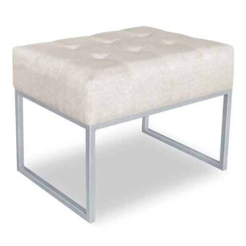 Puff Lisa Suede Bege Base Metálica Industrial Prata