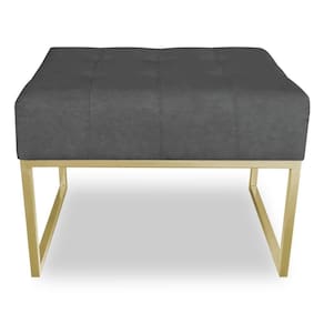 Puff Lisa Suede Grafite Base Metálica Industrial Dourado - Pallazio