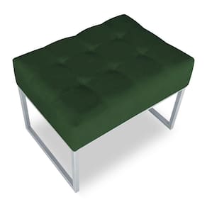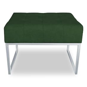 Puff Lisa Suede Verde Base Metálica Industrial Prata