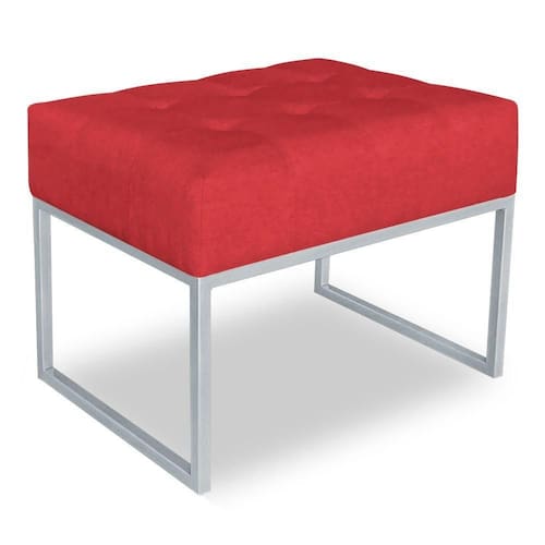 Puff Lisa Suede Vermelho Base Metálica Industrial Prata