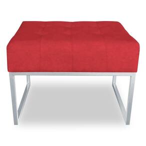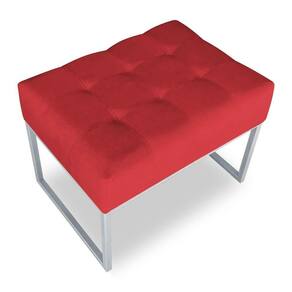 Puff Lisa Suede Vermelho Base Metálica Industrial Prata - Pallazio