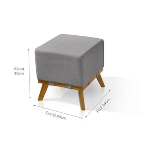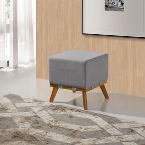 Puff Liso com Base Madeira D26 Soft Linho Sofatec - Prata