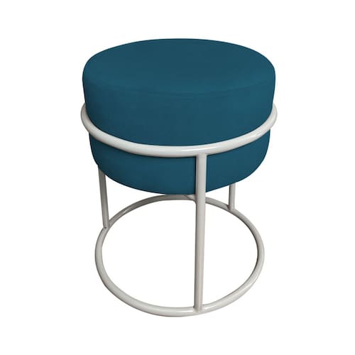 Puff Luma Suede Azul Marinho com Base de Aço Cinza