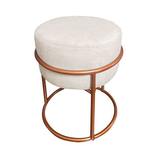 Puff Luma Suede Bege Claro com Base de Aço Cobre - Marrom