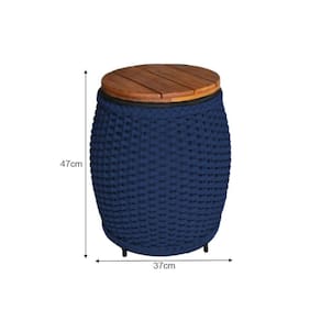 Puff Mesa Garden Em Corda Náutica Base Em Alumínio Preta E Tampo Em Madeira Azul Marinho - Cor: Azul - Preto