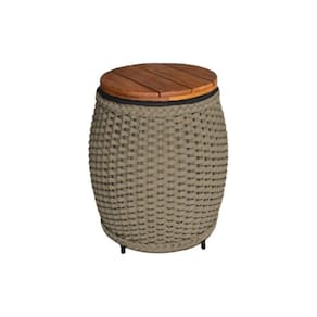 Puff Mesa Garden Em Corda Náutica Base Em Alumínio Preta E Tampo Em Madeira Rami - Cor: Bege