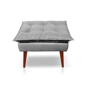 Puff Opala Decorativo Panqueta De Apoiar Os Pés Suede Cinza Claro -