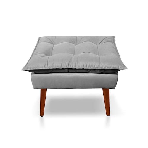 Puff Opala Decorativo Panqueta De Apoiar Os Pés Suede Cinza Claro