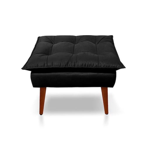 Puff Opala Decorativo Panqueta De Apoiar Os Pés Suede Preto -