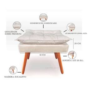 - altura: 52 cm; - largura: 46 cm; - profundidade: 62 cm. O que você está adquirindo: 01 unid. Puff opala com pés de madeira envernizado