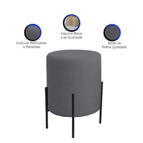 Puff Orgânico Boucle Thor Com Pés De Ferro Preto Cinza Escuro -