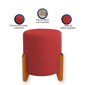 Puff Orgânico Veludo Thor Com Pés De Madeira Vermelho -
