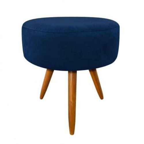 Características do Produto: Material da Estrutura: Madeira de eucalipto oriundo de Área de Reflorestamento/ Madeira Tratada; Chapa: MDP 15mm; Assento: Espuma Densidade 23 Material dos Pés: Pés Palitos em Madeira trabalhada, levemente Inclinados; Quantidade de Pés: 3 Pés; Revestimento: suede; Cor: azul Peso Suportado: até 100 Kg; Conteúdo da Embalagem: 1 Puff Pé Palito; Necessita de Montagem: Produto necessita rosquear os pés; Instruções/cuidado: Limpeza somente com um pano úmido e detergente neutro.