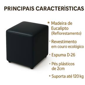 Puff Parisi Couro Ecológico Preto 35x35x42cm Compacto e Reforçado Transforme seu ambiente com o Puff Parisi da Bela Manu Decor, a escolha ideal para quem busca design moderno, conforto e durabilidade. Com um visual elegante e acabamento premium em couro ecológico preto, esse puff combina perfeitamente com salas, quartos, escritórios, closets e hall de entrada, oferecendo funcionalidade e sofisticação ao mesmo tempo. Produzido com estrutura em madeira de eucalipto de reflorestamento, o Puff Parisi é uma opção consciente e sustentável para sua decoração. Seu estofamento é composto por espuma D-26, proporcionando um assento firme e confortável, ideal tanto para sentar quanto como apoio para os pés. Os pés plásticos de 2cm garantem estabilidade e proteção ao piso, enquanto o tamanho compacto (35cm x 35cm x 42cm de altura) permite fácil adaptação em diversos ambientes, mesmo em espaços menores. Suporta até 120kg, o que garante segurança e resistência no uso diário. Principais características: • Estrutura em madeira de eucalipto (reflorestamento) • Revestimento em couro ecológico preto de alta qualidade • Espuma D-26 para maior conforto • Pés plásticos de 2cm com ótima durabilidade • Capacidade de peso: até 120kg Este puff é perfeito para quem busca um móvel funcional, resistente e com visual elegante. Aposte no Puff Parisi e leve mais estilo para sua casa ou escritório com um item que une design contemporâneo, sustentabilidade e conforto. Fabricado pela Bela Manu Decor, referência em móveis estofados com qualidade e bom gosto. Marca: Não Informado