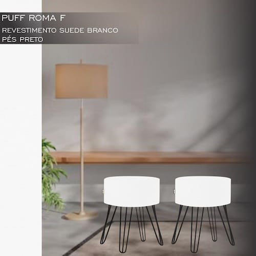 Puff Pé Ferro Decorativo Alto Padrão Branco 2un