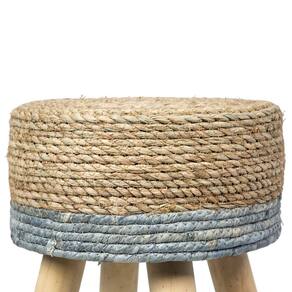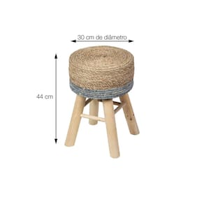 O Puff Phi tem seu assento de fibra natural e base em madeira.