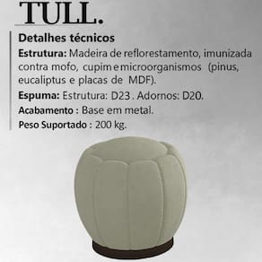 Puff Puf Para Sala Base Metal Tull Veludo, ideal para quem procura por funcionalidade e modernidade, trazendo um visual versátil a sua decoração. Estrutura em madeira de reflorestamento (pinus, eucaliptos e placas de MDF) que oferece maior durabilidade ao produto. Composto por madeira imunizada contra mofo, cupim e microrganismos, revestimento em tecido veludo, estrutura em espuma D-23, adornos em espuma D-20, acompanha sapatas plásticas, e conta com base em metal cor chocolate. Suporta 200 kg. Possui design inovador e sofisticado, proporcionando charme e elegância ao seu ambiente. Este móvel chegará na sua casa separado em 01 volume.