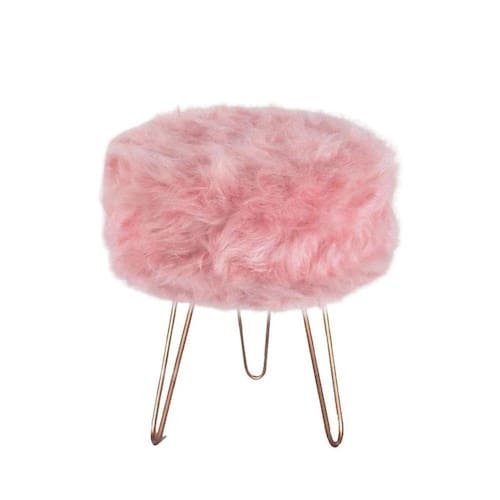 Puff Puff Para Decoração Sala De Estar Redondo Pelúcia Rosa - Pink