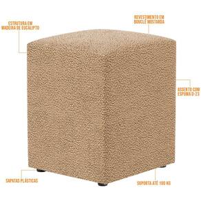 O Puff Quadrado Decorativo L02 Bouclê Mostarda - Lyam Decor é ideal para você que busca por elegância e praticidade em sua decoração! É estruturado com madeira de eucalipto e revestido em Bouclê, tecido de excelente qualidade.