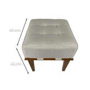 OBS: Pode haver uma pequena diferença de cor de acordo com sua tela. Acabamento dos Pés: Verniz PU fosco Altura: 43 cm Ambiente Principal: Sala de Estar Complexidade da Montagem: Baixa: pode ser montado por uma pessoa sozinha Cor: Bege Cor do Produto: Bege Enchimento: Espuma D-28 Escala de Brilho: Fosco Estilo: Moderno Garantia do Fornecedor: 03 meses Itens Inclusos: 1 Puff Largura: 40 cm Manual de Montagem e Instalação: https://product-hub-prd.madeiramadeira.com.br/873147/documents/64059be9-760f-401e-8aa0-86e8591637d5sappimage20231024at1537361.pdf Material da Estrutura: Madeira Eucalipto Material dos Pés: Madeira Eucalipto Necessita Montagem: Sim Origem do Produto: Nacional Peso: 4,5 kg Possui Baú: Não Possui Pés: 04 Possui Rodízio: Não Profundidade: 40 cm Recomendações de Uso, Manutenção e Limpeza: Para preservar seu puff é importante seguir cuidados como limpeza regular com um pano macio e levemente umedecido. Evite expor a água ou umidade, nunca use objetos cortantes, ásperos ou abrasivos Sistema de Montagem: Enrosque o parafuso do pé de eucalipto na rosca do acento Suporta Até (kg): 120 kg Ean: 7909903446041