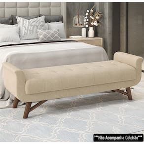 Vamos completar o seu ambiente com um móvel elegante e aconchegante?! Aqui temos a opção perfeita para você! Vem conhecer o Puff Recamier Calçadeira 160cm Base Madeira Neville P02 Bouclé Bege, da Mpozenato!