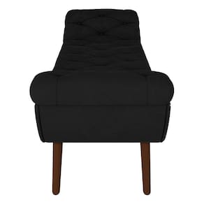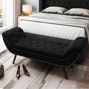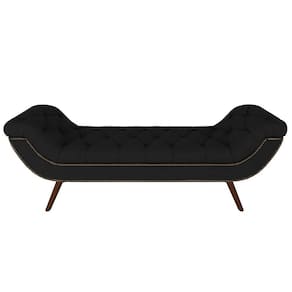 Puff Recamier Calçadeira 160cm Pés Palito Madeira Vêneto P02 Veludo Preto - Mpozenato