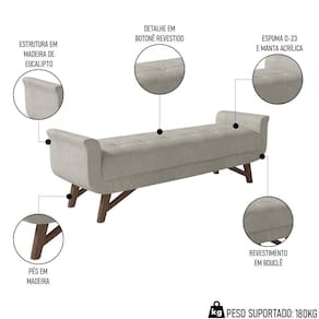 Puff Recamier Calçadeira 195cm Base Madeira Neville P02 Bouclé Cru - Mpozenato