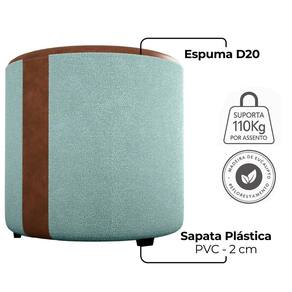 Puff Redondo Copenhage, conforto e estilo compacto! Estrutura em Madeira de Eucalipto (de reflorestamento) e MDF, estofado com espuma D20 e revestido em tecido Bouclé (macio e encorpado) com detalhes de costura em Corino Marrom (laterais e assento), além das sapatas plásticas (PVC) e design redondo que suporta até 110 kg. Este produto será entregue em 01 volume.