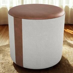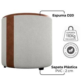 Puff Redondo Copenhage, conforto e estilo compacto! Estrutura em Madeira de Eucalipto (de reflorestamento) e MDF, estofado com espuma D20 e revestido em tecido Bouclé (macio e encorpado) com detalhes de costura em Corino Marrom (laterais e assento), além das sapatas plásticas (PVC) e design redondo que suporta até 110 kg. Este produto será entregue em 01 volume.