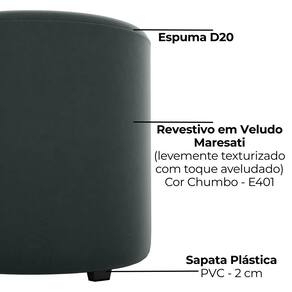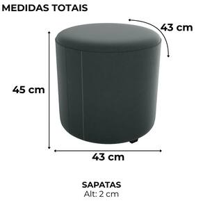 Puff Redondo Copenhage, muito conforto e estilo compacto! Estrutura em Madeira de Eucalipto (de reflorestamento) e MDF, estofado com espuma D20 e revestido em Veludo Maserati. O design redondo é valorizado pelo detalhe de costura vertical nas laterais, além das sapatas plásticas (PVC), suporta até 110 kg. Este produto será entregue em 01 volume.