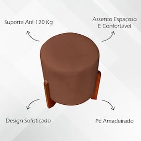 Não nos responsabilizamos por serviços de montagem ou transporte em escadas e elevadores. Para dúvidas, utilize o campo de perguntas.PUFF REDONDO ELOAH SUEDE CORES PÉ CASTANHO