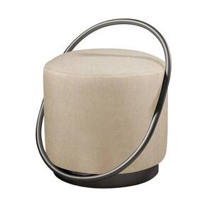 Puff Redondo Lunar Em Linho E Base Metal Preto Cor Linho Bege Claro