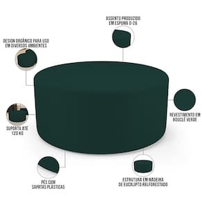 Características: Estrutura em madeira de reflorestamento de eucalipto. Revestimento em Bouclê de alta qualidade na cor Verde. Assento com espuma D-26 de alta resistência. Design orgânico para uso em diversos ambientes. Pés sapatas plásticas. Peso suportado: Até 120 kg.